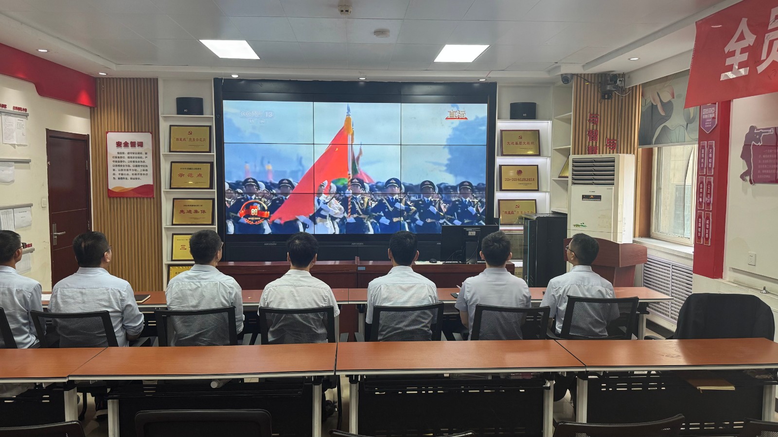 歷史燭照未來,精神永續(xù)傳承。為深切緬懷在抗日戰(zhàn)爭(zhēng)中英勇獻(xiàn)身的革命先烈,大力弘揚(yáng)偉大的抗戰(zhàn)精神,引導(dǎo)全體黨員、職工銘記光輝歷史、堅(jiān)定理想信念、強(qiáng)化責(zé)任擔(dān)當(dāng),9月3日,機(jī)運(yùn)工區(qū)黨支部組織開展了“銘記歷史偉業(yè),傳承紅色基因”主題黨日活動(dòng),組織全體黨員集中觀看紀(jì)念中國(guó)人民抗日戰(zhàn)爭(zhēng)暨世界反法西斯戰(zhàn)爭(zhēng)勝利80周年閱兵儀式現(xiàn)場(chǎng)直播。上午九時(shí)整,機(jī)運(yùn)工區(qū)全體黨懷著無比崇敬與激動(dòng)的心情,目光齊聚屏幕。伴隨著激昂雄壯的國(guó)歌奏響,鮮艷的五星紅旗在天安門廣場(chǎng)冉冉升起,大家心潮澎湃,肅然起敬。隨后,規(guī)模宏大、氣勢(shì)磅礴的閱兵式正式開始。屏幕上,一個(gè)個(gè)整齊劃一、威武雄壯的徒步方隊(duì),邁著鏗鏘有力、撼人心魄的步伐走過檢閱臺(tái),堅(jiān)毅的眼神、挺拔的身姿,充分展現(xiàn)了新時(shí)代軍人聽黨指揮的忠誠(chéng)品格和能打勝仗的過硬本領(lǐng);一列列代表著國(guó)家科技實(shí)力與國(guó)防現(xiàn)代化建設(shè)最新成果的裝備方隊(duì),鐵流滾滾,氣勢(shì)如虹,尖端武器依次亮相,彰顯了捍衛(wèi)國(guó)家主權(quán)、安全、發(fā)展利益的堅(jiān)定決心與強(qiáng)大能力;雄鷹呼嘯,劃破長(zhǎng)空,戰(zhàn)機(jī)編隊(duì)以精準(zhǔn)的隊(duì)形和磅礴的氣勢(shì)接受檢閱,描繪出壯美的藍(lán)天畫卷,宣示著捍衛(wèi)國(guó)家領(lǐng)空安全的鋼鐵意志。整個(gè)閱兵過程,秩序井然、威武雄壯、氣勢(shì)恢宏,生動(dòng)詮釋了人民軍隊(duì)“聽黨指揮、能打勝仗、作風(fēng)優(yōu)良”的強(qiáng)軍目標(biāo),全方位展示了在黨的堅(jiān)強(qiáng)領(lǐng)導(dǎo)下,國(guó)家日益強(qiáng)大的綜合國(guó)力和維護(hù)世界和平的堅(jiān)定信念。屏幕前,黨員們?nèi)褙炞ⅲ瑹o不被這震撼人心的場(chǎng)面所感染,民族自豪感與榮譽(yù)感油然而生,現(xiàn)場(chǎng)不時(shí)響起由衷的贊嘆和熱烈的掌聲。通過本次“銘記歷史偉業(yè),傳承紅色基因”主題黨日活動(dòng),機(jī)運(yùn)工區(qū)黨支部全體黨員經(jīng)歷了一次深刻的精神淬煉與思想升華。大家的歷史使命感、民族自豪感、崗位責(zé)任感得到顯著增強(qiáng),紛紛表示以更加飽滿昂揚(yáng)的精神狀態(tài)、更加求真務(wù)實(shí)的工作作風(fēng)、更加開拓創(chuàng)新的進(jìn)取意識(shí),恪盡職守,銳意進(jìn)取,全力以赴保障原煤運(yùn)輸安全高效,為工區(qū)及公司的持續(xù)高質(zhì)量發(fā)展貢獻(xiàn)全部力量!